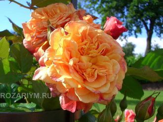 Цветки густомахровые, крупные диаметром 9 – 11 см, включают в себя более 40 волнистых лепестков. Форма роз изменяется в процессе цветения от округлого бутона до розеточной. Раскрывшиеся цветки абрикосово-розовые, с более насыщенным окрасом нижних лепестков. Нераскрывшийся бутон имеет медно-оранжевый окрас. Одна кисть содержит 5 — 10 бутонов.Розы в соцветии распускаются по очереди, поэтому перерыва в цветении практически не заметно. Цветение длится с начала лета до самой осени.Во время цветения окраска лепестков меняется несколько раз, от оранжево-розовые с оттенком апельсинового тона до нежно-лососевый, в конце цветения до желто-рыжего.Форма цветка в начале цветения островерхая. Полностью распустившиеся бутоны рыхлые с краями, загнутыми наружу, напоминая бурбронские виды.Устойчивость к черной пятнистости и мучнистой росе высокая.Морозостойкость этого сорта по данным Министерства сельского хозяйства США (USDA) соответствует зоне 6b