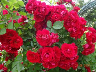 Роза Амадеус олицетворяет природную красоту и роскошь. Элегантная и утонченная форма цветка, стройный силуэт куста и божественный аромат восхищают. Алое пламя ее бархатистых лепестков в начале цветения дополняется малиновыми переливами в середине сезона и благородными бордовыми тонами в конце лета.Куст крупного размера, высотой 2.5-3м.Темно-зеленые листья и насыщенно красные соцветия гармонично сочетаются и смотрятся очень красиво.Аккуратный плотный удлиненный бутон классической формы состоит из сорока лепестков. Он распускается в цветок до 12 сантиметров в диаметре. Они собираются в пышные и ароматные кисти: на одном стебле распускается до девяти цветков.Цветки совершенно не боятся ветра и дождя, не выгорают на солнце.