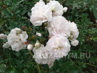 Роза почвопокровная Сноу Балет (Snow Ballet) название этого сорта в переводе с английского означает "снежный балет". C многочисленными белыми или почти белыми махровыми цветками из 17-25 лепестков чашевидной формы, собранными в соцветия. Бутон округлый, зеленовато-кремовый, распускается медленно. Листва глянцевая, кожистая. Яркого аромата не источает, зато ценится за удивительную красоту. Любит растение хорошо освещенные места, к почве совершенно неприхотливо, дает много прикорневых побегов, посредством которых может размножаться. Во время цветения наблюдается большое количество зелени/ Ландшафтные дизайнеры используют этот сорт в композиции с другими растениями.